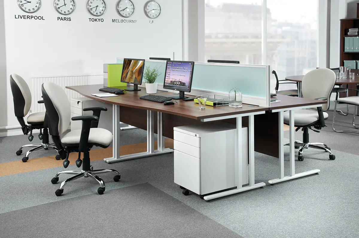 The double upright cantilever frame and feet levellers ensure stability on any surface. Available in a range of modern finishes—Beech, Oak, Maple, White, and Walnut—to complement any office aesthetic.