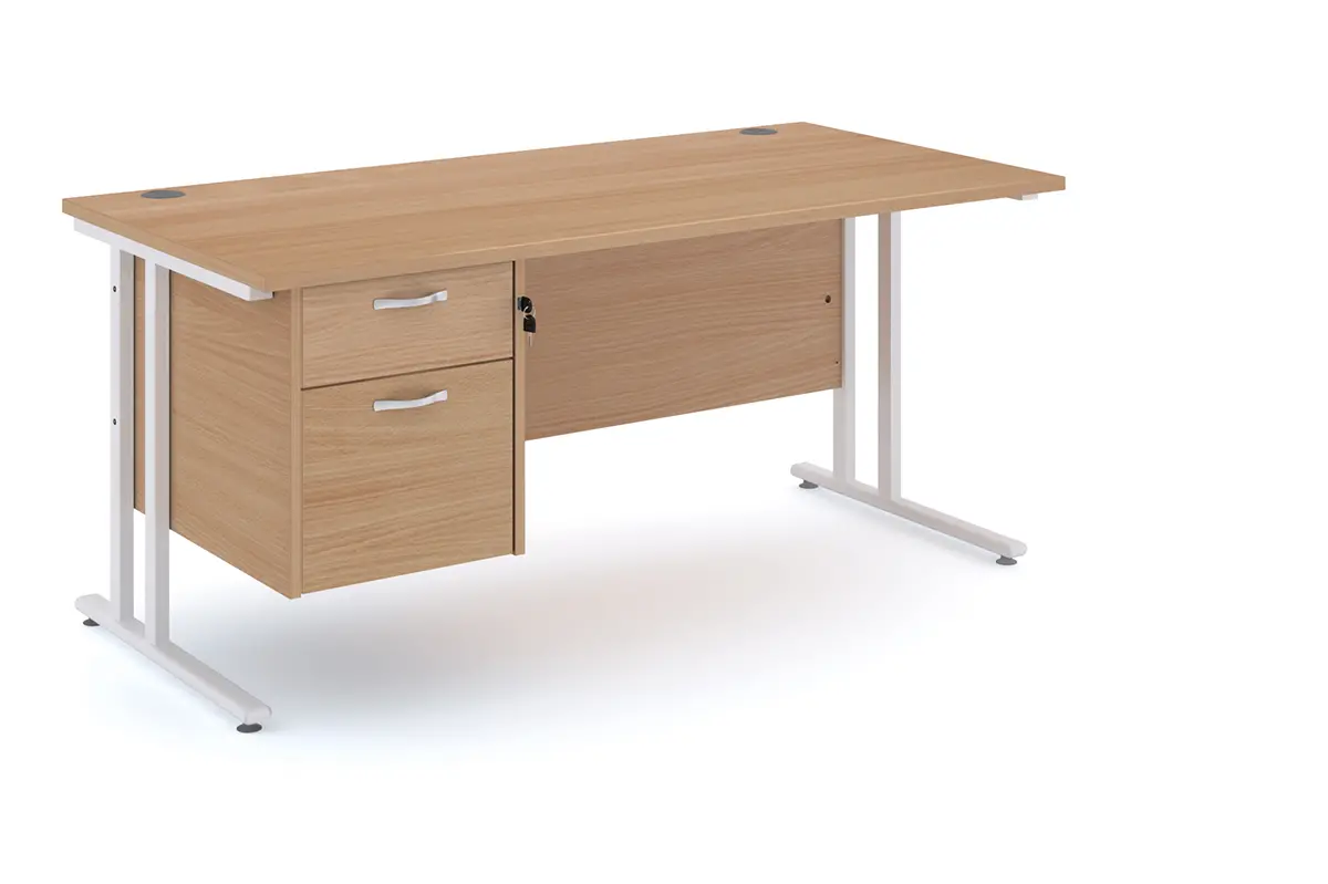 Upgrade your workspace with this sleek, functional desk featuring a white cantilever leg frame and a 2-drawer fixed pedestal.